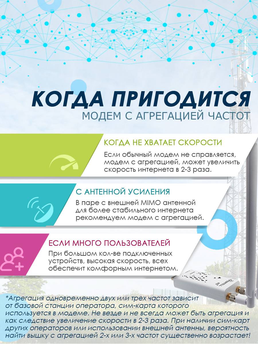 Хотим обратить внимание на то, что не все операторы могут выдавать 3 частоты одновременно. Всё зависит от базовой станции оператора, от установленного на ней оборудования.
