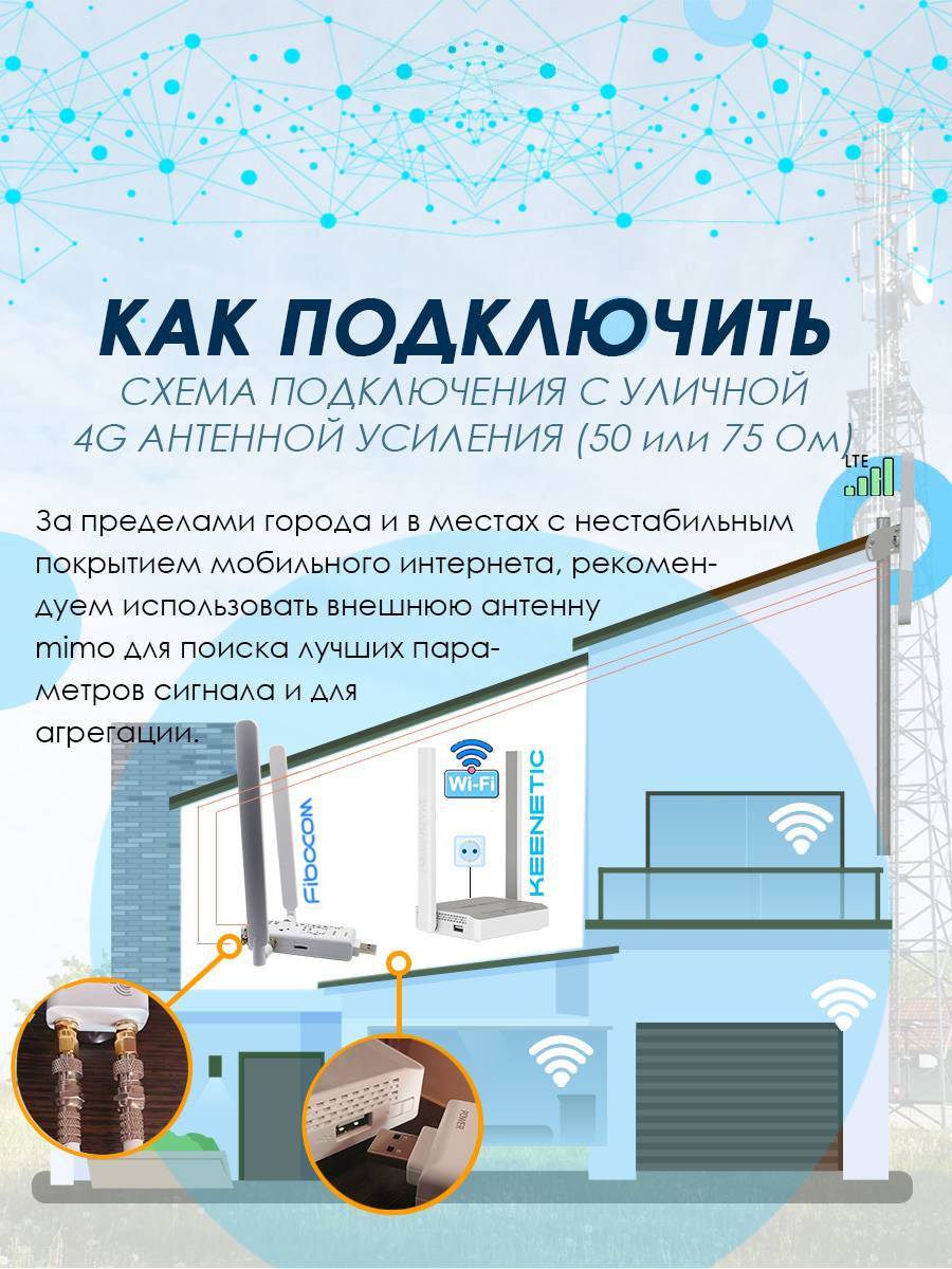 При плохом/не качественном покрытии мобильной сети, как правило за городом, необходимо настроить внешнюю антенну с помощью кнопки “Метрики сигнала” и добиться наилучших показателей.