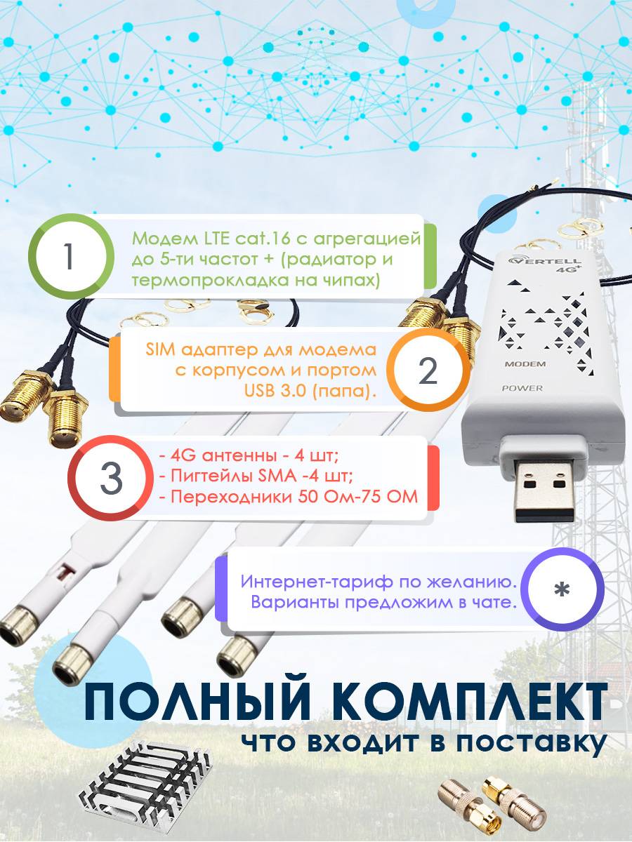 6. Антенны 4G (2-5Db) – 4 шт.;