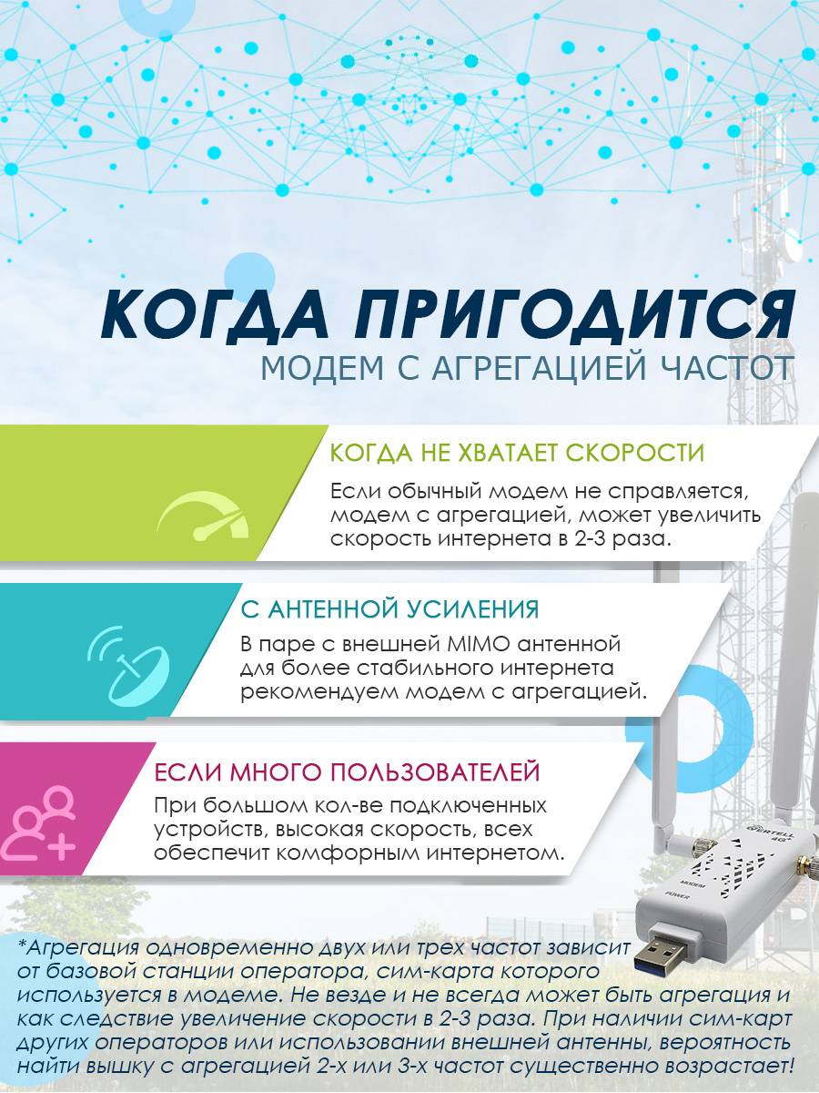 Хотим обратить внимание на то, что не все операторы могут выдавать 3 частоты одновременно. Всё зависит от базовой станции оператора, от установленного на ней оборудования.